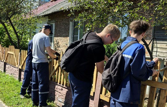 На улице Чапаева 14 августа работники Вилейского ЖКХ вместе со студенческим отрядом приступили к обновлению краски забора.