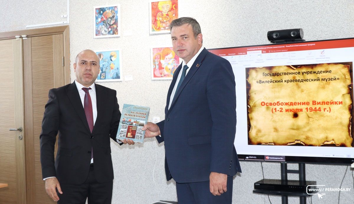 Здесь бережно хранят память о героическом Ази Асланове, Генерале Вперёд, как называли его на фронте, и его ратных подвигах во время Великой Отечественной войны. Также в этот особенный для вилейчан день в выставочном зале краеведческого музея состоялась презентация книги «Наследники Великой Победы» Фуада Гусейнзаде, председателя общественного объединения «Журналистская поддержка диаспорской деятельности».