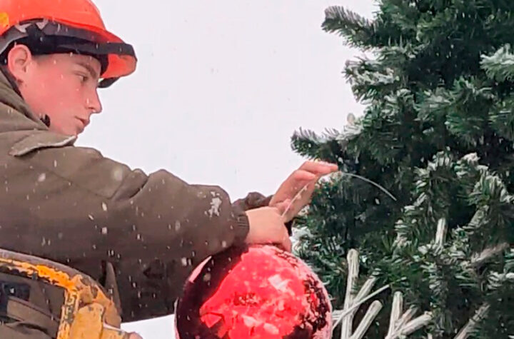 Главную елочку на Центральной площади уже украсили снежинками и гирляндой. А сегодня – новогодними шарами....