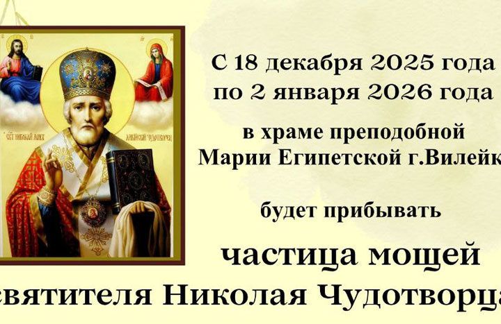 Вилейский храм преподобной Марии Египетской внес некоторые изменения, когда верующие могут приложиться к святыне...