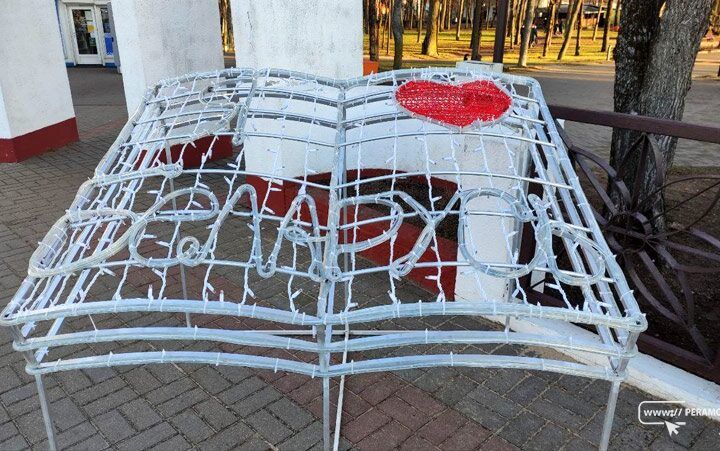 Световая инсталляция «Я люблю Беларусь» замечена у входа в городской парк. В ночное время...