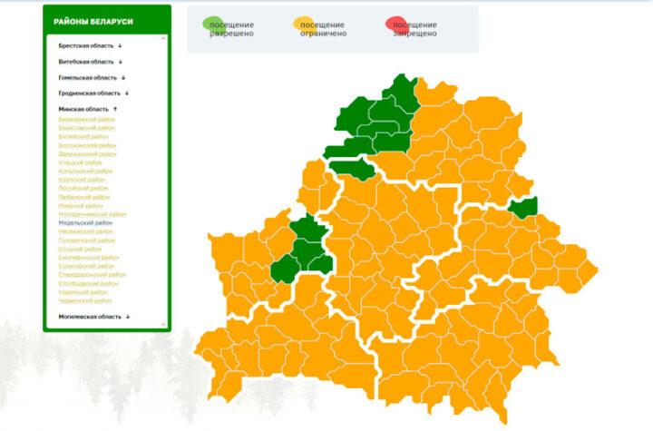 Ограничения на посещение лесов введены в 74 районах Беларуси. Такая информация содержится на интерактивной...