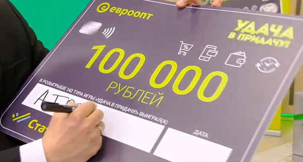 19 мая состоялся 142 тур игры «Удача в придачу», которую проводит сеть магазинов «Евроопт»....