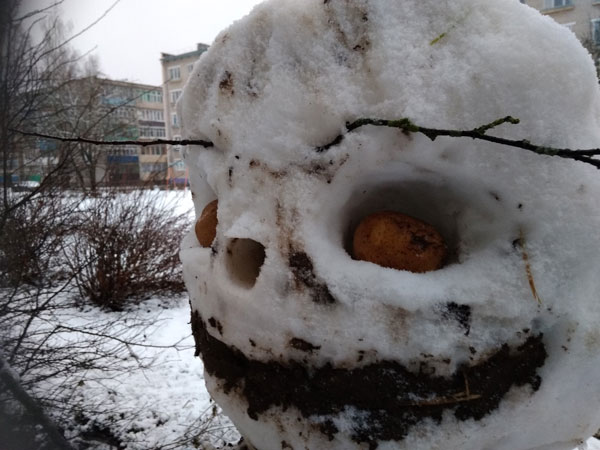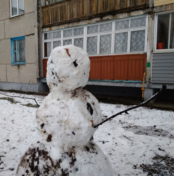 А вот такого снеговика слепили у кого-то прямо перед окном. Так он выглядит сзади…