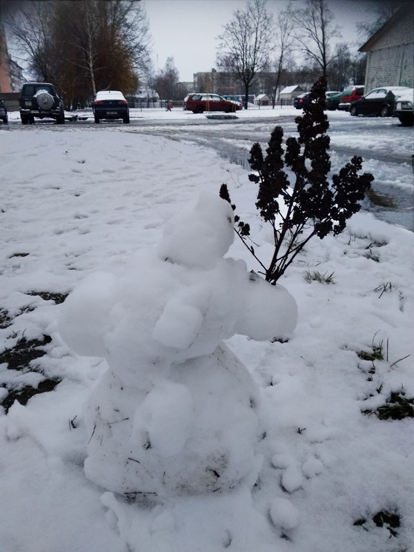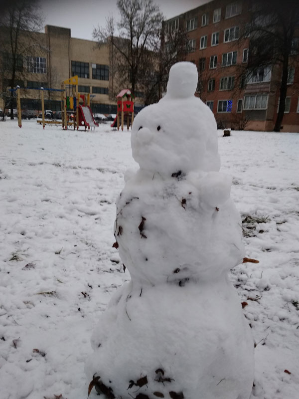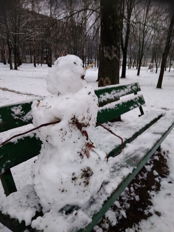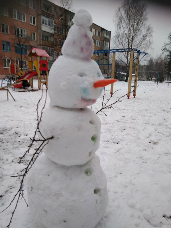 Новый год в Вилейке прошел без снега и приятного хруста под ногами, однако удивило утро 1 января. Зима все же решила порадовать особенно юных жителей города небольшим снегом. Он был мокрый и на дорогах превратился в слякоть и огромные лужи, но детвору это не остановило. Юные вилейчане лепили снеговиков и даже пару раз успели прокатиться с горки. Вот каких снеговиков и не только нам удалось сфотографировать.