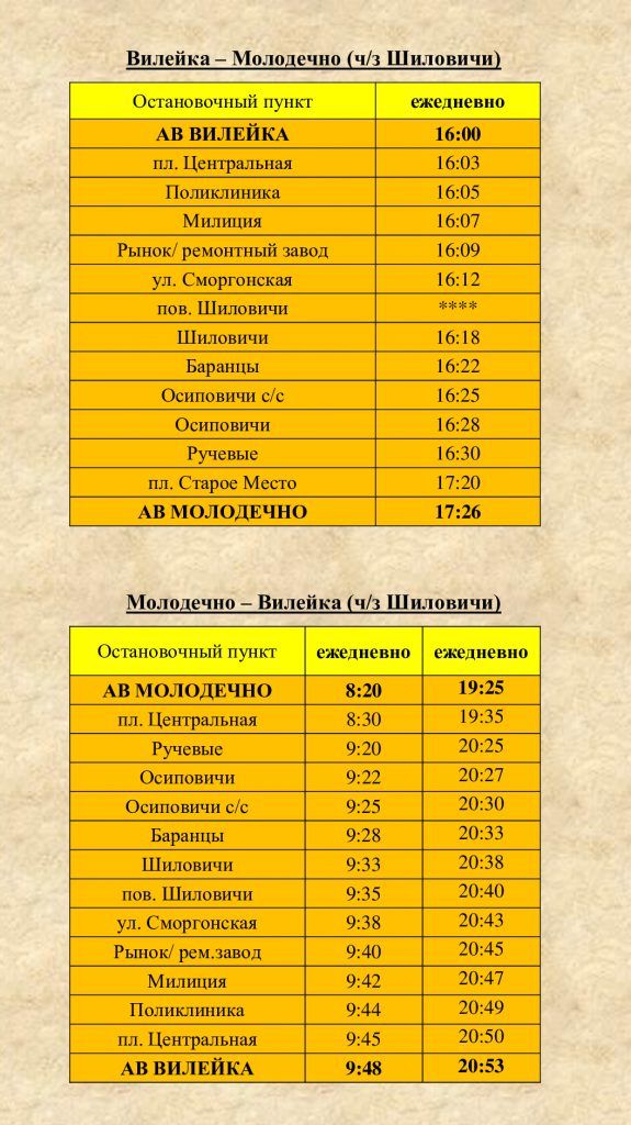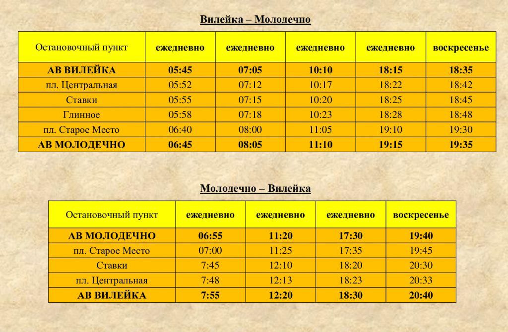 В связи с проведение ремонтных работы на железнодорожном переезде автомобильной дороги Р-28 «Минск-Молодечно-Нарочь» с 6 по 10 октября изменяется расписание движения автобусов по маршрутам «Вилейка — Молодечно» и «Вилейка — Молодечно ч/з Шиловичи». Об этом сообщили в филиале «Автобусный парк № 5» ОАО «Миноблавтотранс» г. Вилейка.