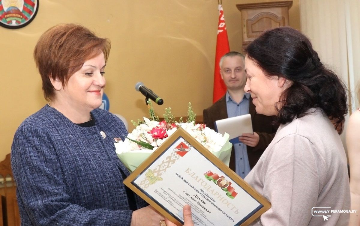 Благодарность председателя Вилейского райисполкома из рук Марины Возняк получили ведущий специалист предприятия Наталья Ахрем и машинист моечных машин Светлана Дурейко.