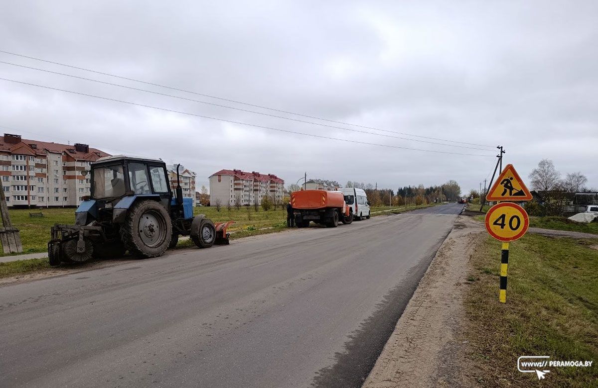 28 октября на улице Пилипа Орлика в Вилейке велись дорожные работы. На участке протяженностью 200 метров рабочие укладывали новое асфальтное покрытие.