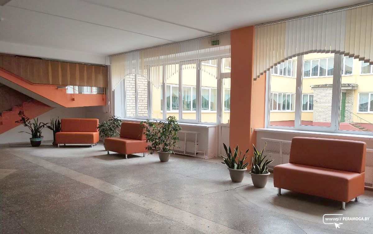 И действительно, изменения заметны уже при входе на территорию гимназии – озелененная центральная зона радует ярким многообразием цветов. Все растения с заботой выращивали в школьной теплице. Комфортнее стало и внутри учреждения. В фойе школьный интерьер украсили мягкие модульные диваны, приобретённые при поддержке ОАО «Зенит-БелОМО».