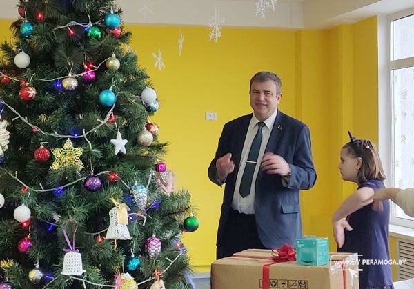 В предновогодние дни детишек, которые сейчас находятся в районном социально-педагогическом центре, с наступающим Новым годом поздравили председатель Вилейского районного исполнительного комитета Анатолий Завацкий, начальник управления по образованию, спорту и туризму райисполкома Ольга Артышевич, председатель районной организации РОО «Белая Русь» Инна Крышковская и председатель районного отделения партии «Белая Русь» Марина Кривошея. К благотворительному марафону присоединились и учащиеся гимназии №2 – Роман и Даниил – чтобы передать подарки и принять участие в новогодней программе. А она никого не оставила равнодушным – кроме Деда Мороза со Снегурочкой с ребятами играли Лесовичок и Лисичка, подарив немало поводов для улыбок. Участниками новогодней программы были и гости.