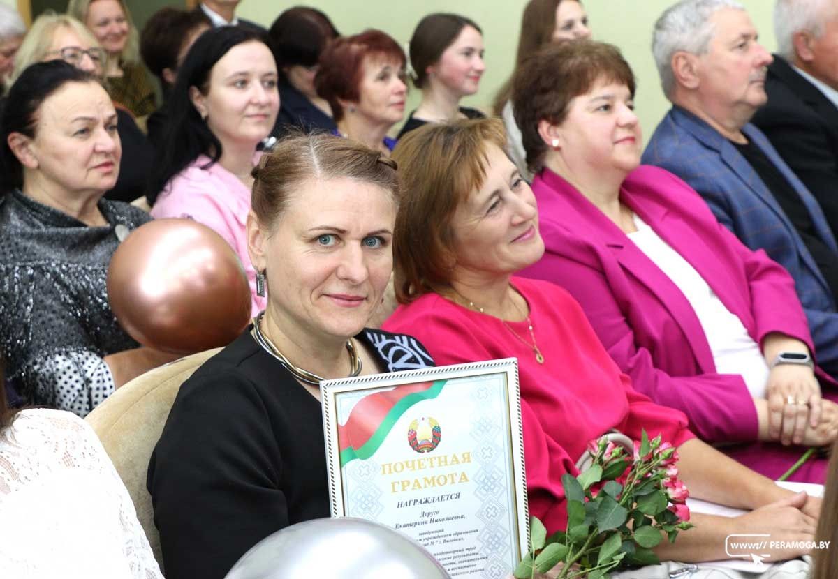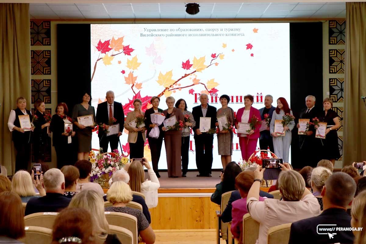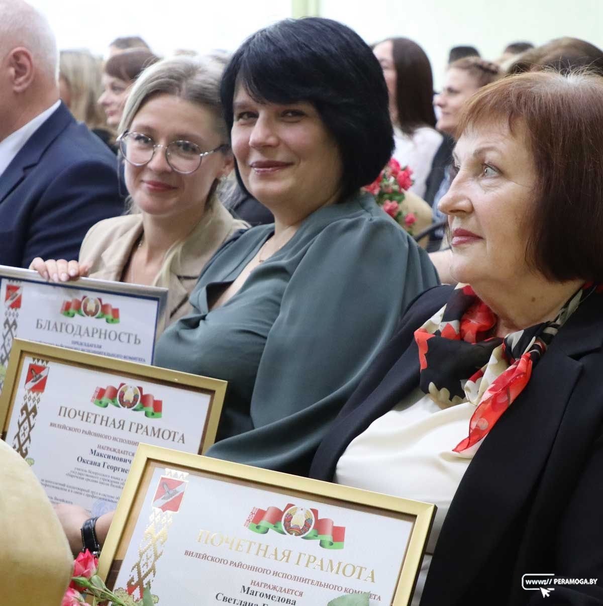 В торжественной обстановке заслуженными наградами были отмечены лучшие педагоги города и района. На сцене звучали слова благодарности и признания важности педагогического труда, подчеркивая значимость вклада каждого учителя в развитие и воспитание подрастающего поколения. Приятным моментом стало и видеопоздравление от сотрудников Вилейского РОЧС и ветеранов педагогического труда. А праздничный концерт подарил присутствующим много ярких эмоций и хорошее настроение.