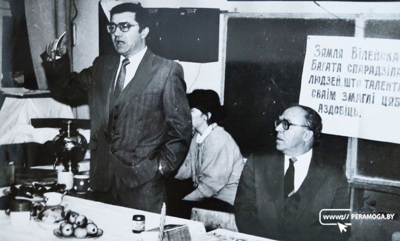 – Клемантовіч, дырэктар школы, гэта заўважаў, хваліў мяне і сказаў: «Як скончыш вучобу ў інстытуце – прыязджай, будзеш працаваць намеснікам дырэктара па выхаваўчай рабоце, – расказаў суразмоўца. – Я пагадзіўся. Мне было радасна і светла. Да таго ж у тую Сцешыцкую зіму – студзень-люты-сакавік – мае вершы ўпершыню надрукавала раёнка «Шлях перамогі» нават з фотаздымкам, што мне, маладому спецыялісту-практыканту, дадало аўтарытэту, бо нават мясцовы калгас запрасіў аднойчы мяне адрэдагаваць тэкст для альбома працоўнай Славы, здаецца, так ён называўся. Я пазнаёміўся з тагачаснымі вілейскімі паэтамі – Ганнай Новік, Уладзімірам Дубовікам, Барысам Манцэвічам, Уладзімірам Панковічам, Іванам Станкевічам. Вельмі ўдала апісаў літаратурнае жыццё Вілейшчыны краязнавец Сяргей Макарэвіч у сваёй кнізе «Край мой верасовы». Ён мне падарыў асобнік з надпісам «паэту-земляку», які я захоўваю ў сваёй бібліятэцы. У Сцешыцкай сярэдняй школе я зарабіў добрыя грошы. Скончыў інстытут, у мяне было на ашчаднай кніжцы 300 рублёў. Пашыў сабе ў мінскім атэлье касцюм і 15 жніўня 1968 года з’явіўся ў Вілейскі раённы аддзел адукацыі з накіраваннем на працу.