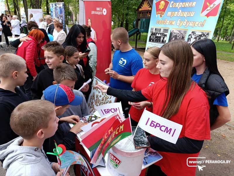 Городской парк в Вилейке в День народного единства стал центром притяжения — здесь работали тематические локации и фотозоны, звучала музыка и царила атмосфера единства.