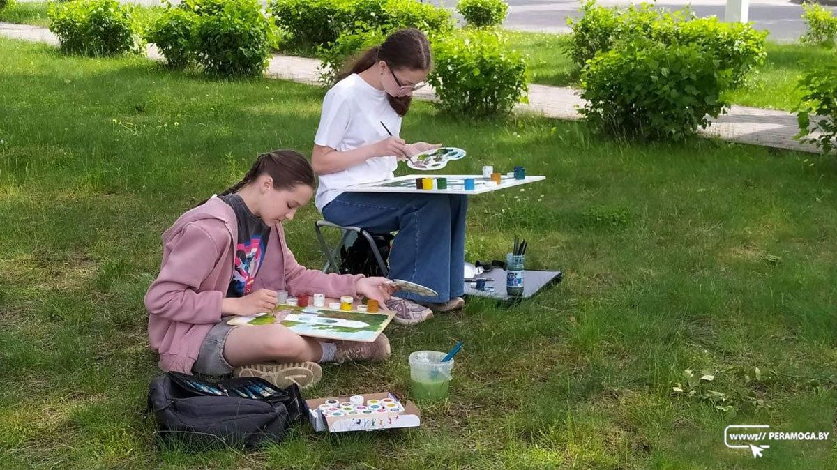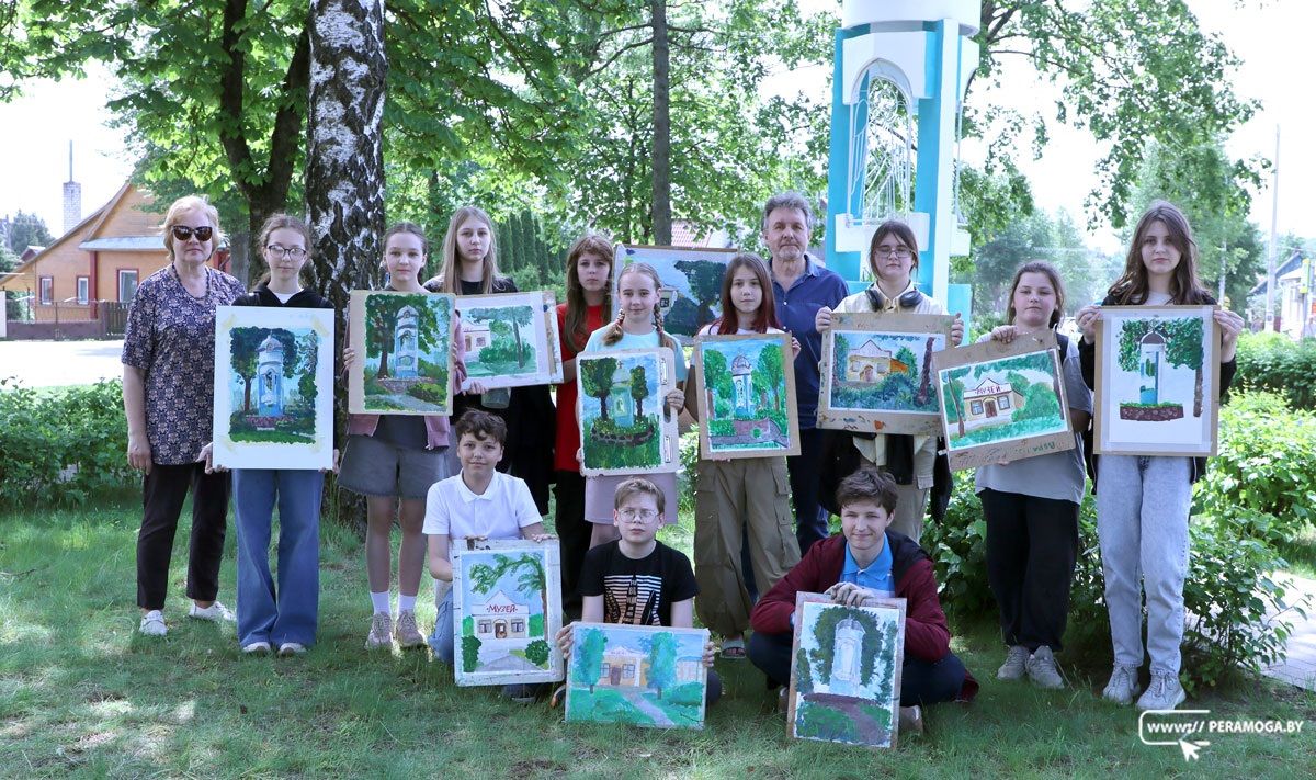 В пленэре принимают участие 19 юных талантов – учащиеся образцовой студии «Вясёлка» гимназии №1 «Логос», студии «Залатая палітра» гимназии №2, а также класса изобразительного искусства сельского филиала агрогородка Любань Вилейской детской школы искусств имени М.А. Козинца.