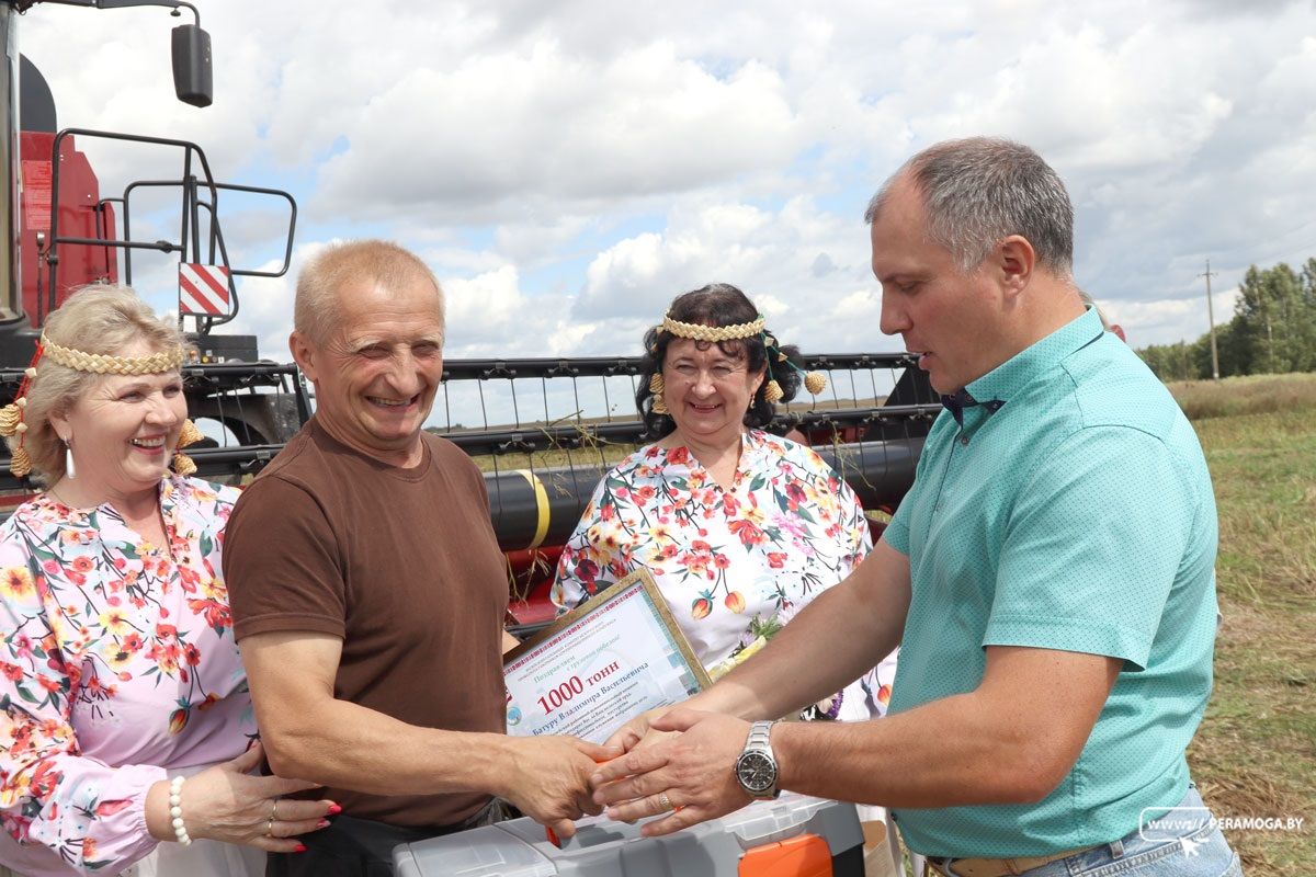 «Наперад, да новых поспехаў і другой тысячы тон!» – такое пажаданне адрасаваў камбайнерам старшыня райвыканкама Анатоль Завацкі.