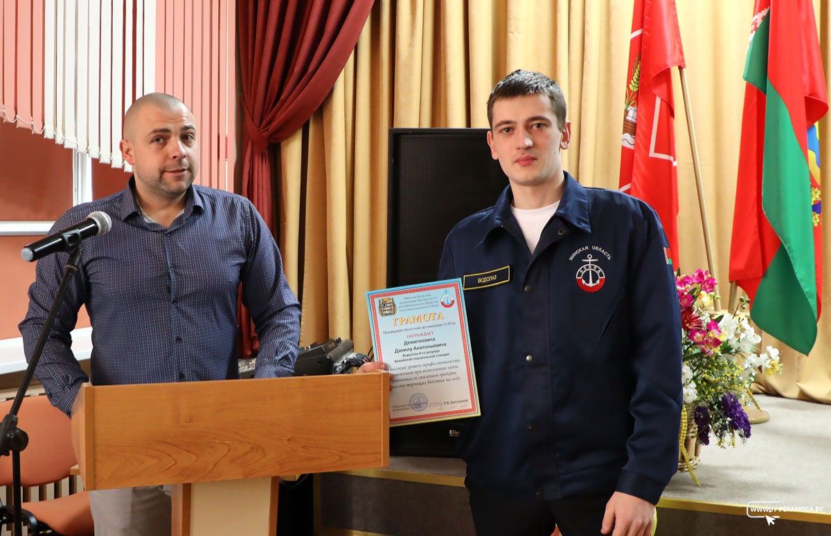 Площадкой для церемонии награждения стала гимназия №1 «Логос». Под аплодисменты присутствующих водолазный специалист МОО ОСВОД Виталий Мисюкевич вручил шесть заслуженных наград: трем водолазам – Михаилу Гутнику, Данилу Демиткевичу, Сергею Шуту, также мотористу-рулевому Фёдору Козлянку, матросу-спасателю Валерию Гаранину и медсестре Людмиле Кузьмичёвой.