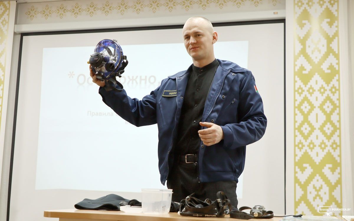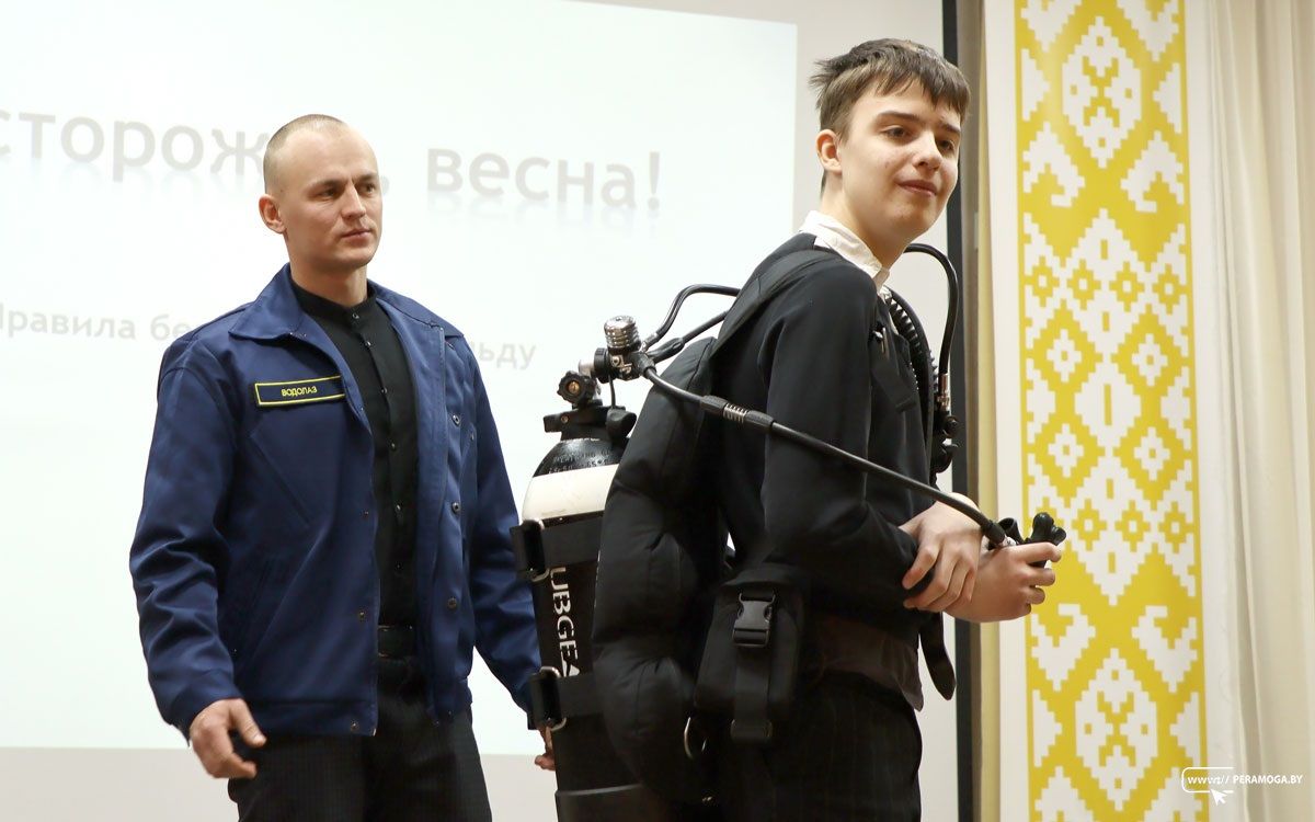 Мероприятие продолжилось презентацией, во время которой ребята узнали о правилах безопасности на льду весной. Особенно интересной стала демонстрация спасательного снаряжения, которое можно было рассмотреть вблизи, примерить и сделать памятное фото.
