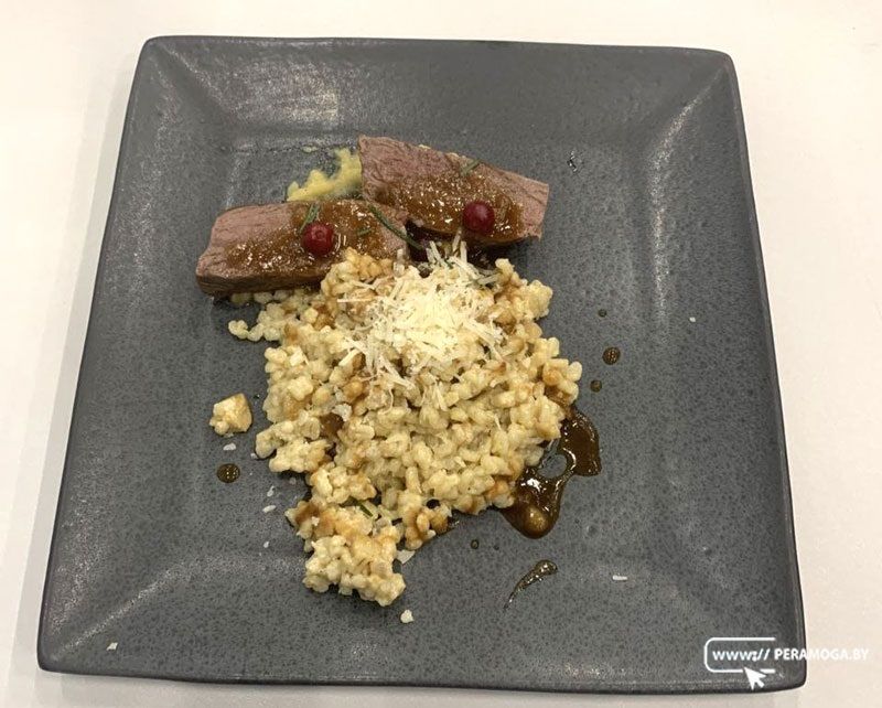 А молодой повар Яна Буйновская хоть и участвует впервые, но смело решилась на гастрономический эксперимент. Её конкурсное блюдо сочетает традиции и современные техники – «Оленина с перлотто с соусом из квашеного мёда, с соусом из квашеной капусты и соусом дэмигласс с боровиками», которое девушка готовила под руководством мастеров производственного обучения Елены Фирс и Елены Русак.