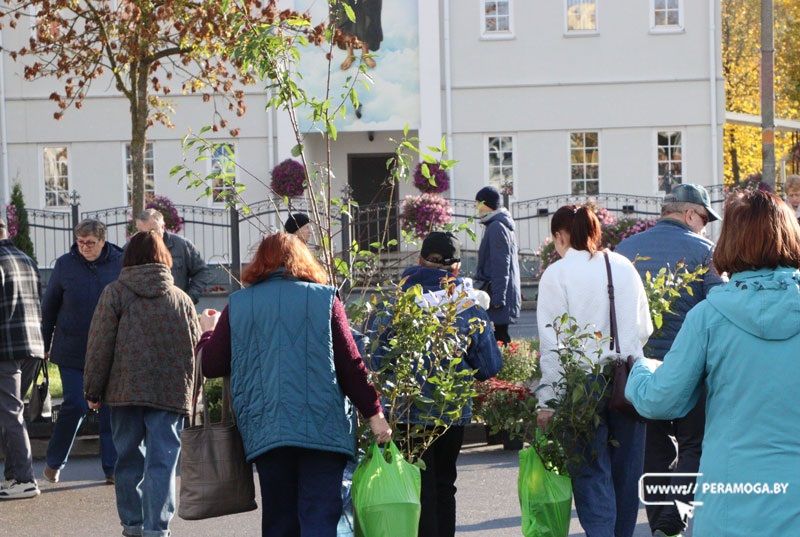 Многолюдно было и на площадке, где продавали саженцы для дачных участков. Вилейчане приобретали яблони, голубику, смородину, активно распродавалась и шарафуга – гибрид сразу трех растений: сливы, персика и абрикоса. Многие вилейчане впервые покупали это плодовое деревце. «Увидели в интернете, и очень стало интересно вырастить у себя на участке», – делились покупатели.