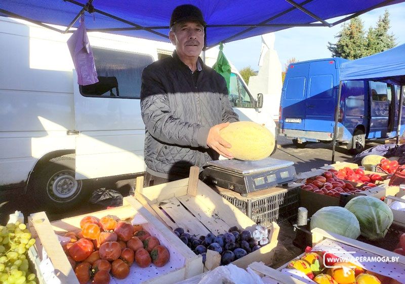 На ярмарке также привлекало внимание яркое разнообразие осенних цветов, которые привезла продавец из Мядельского района. Особенно популярными у покупателей были хризантемы корейского типа. А для самых искушённых любителей свежих фруктов и бахчевых культур предлагались арбузы сорта «Холодок» из Дагестана, дыни из Казахстана, а также гранаты и хурма – из Азербайджана. Кроме того, на ярмарке предлагали узбекский виноград, который славится своим вкусом.