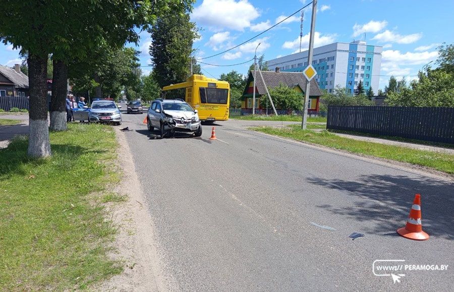 Перепутала педали. В Вилейке автоледи не уступила дорогу автобусу – произошло столкновение