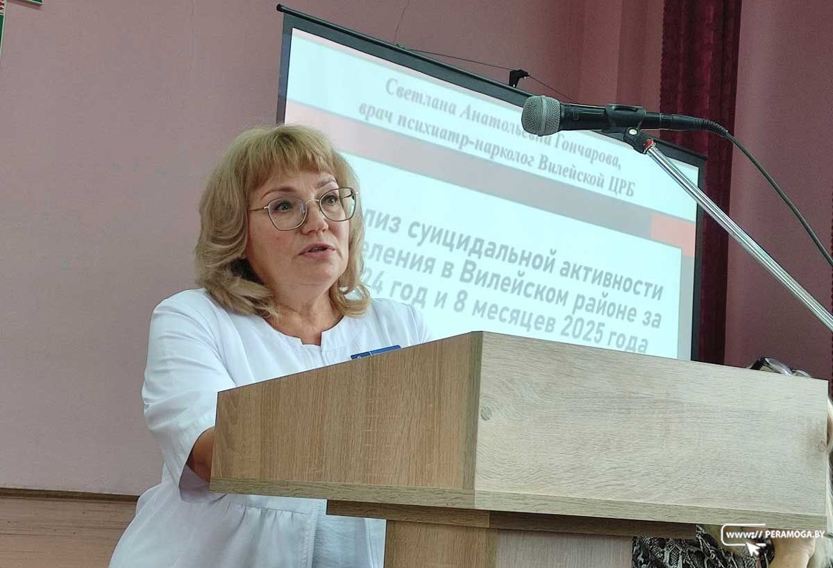 – Проводимая в Вилейском районе работа по снижению смертности граждан от суицидов показывает свою эффективность. В прошлом году решение уйти из жизни приняли семь человек, что на 30% меньше по сравнению с 2023 годом. Среди них 5 мужчин и 2 женщины. В то же время наблюдается рост количества суицидов среди городского населения, – привела статистику врач психиатр-нарколог Светлана Гончарова. – Что касается текущего года, то за 8 месяцев в районе зарегистрировано 3 случая, и накануне все употребляли алкоголь. К обстоятельствам относятся соматические, наркологические и психотравматические заболевания, а также личностные особенности, одиночество, социальные и семейные проблемы.