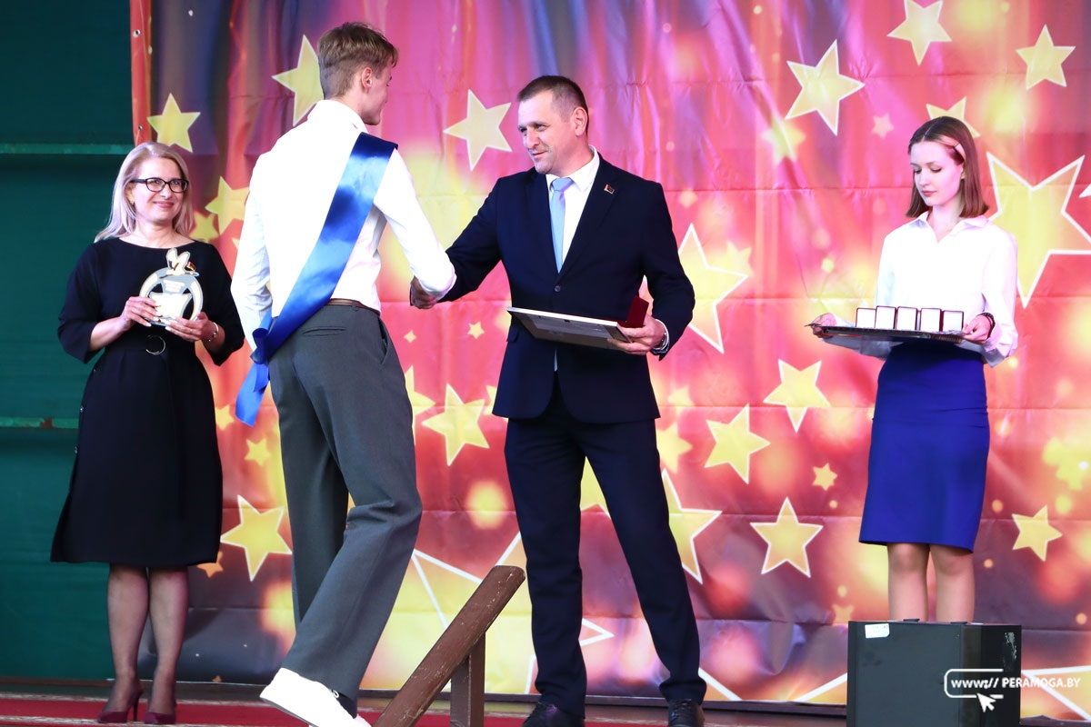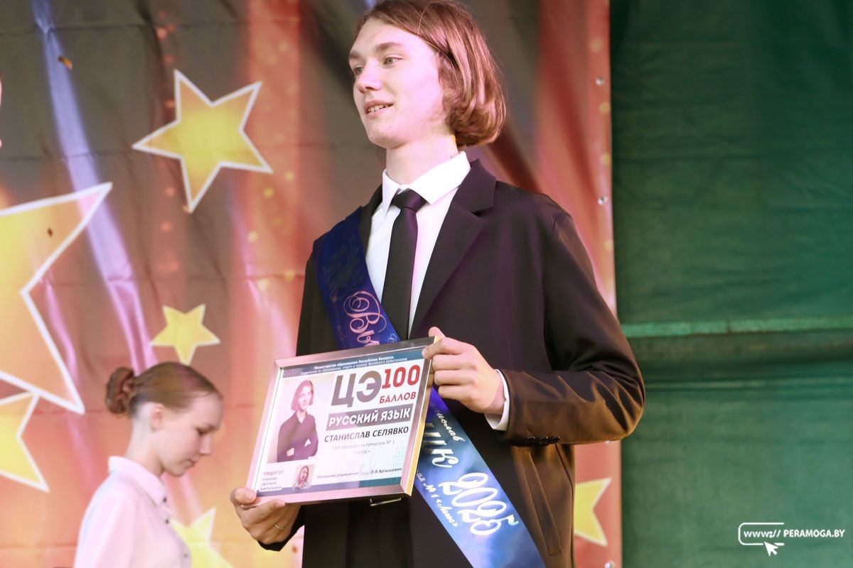 Умные и целеустремлённые, творческие и активные, успешные в учебе и различных конкурсах – за все эти достижения выпускников-2025 чествовали на праздничной сцене представители руководства района и управления по образованию, спорту и туризму Вилейского райисполкома. Особым вниманием пользовались выпускники, закончившие школу с отличием – на сцену они поднимались с родителями, которым были вручены благодарственные письма председателя Вилейского райисполкома и денежное вознаграждение. 100-балльники и подготовившие их педагоги тоже были героями праздничного вечера.