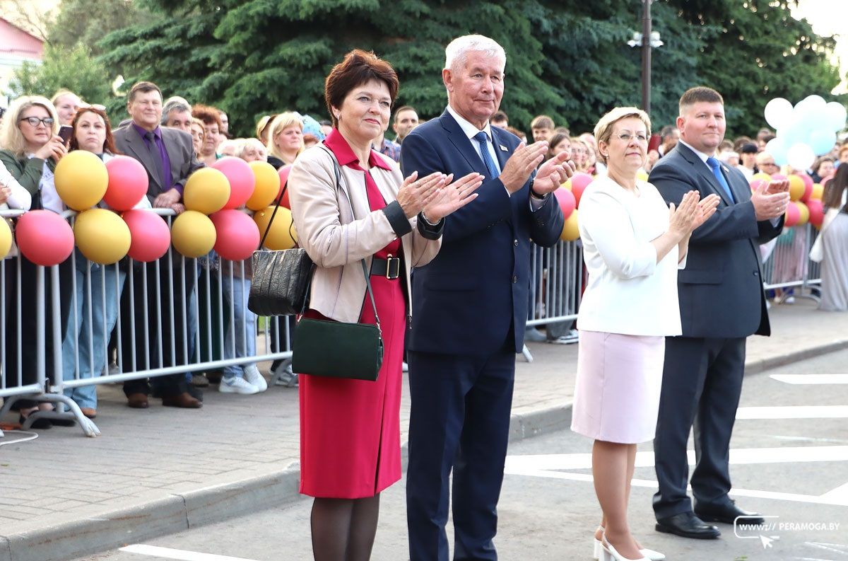 Традиционное возложение цветом к памятнику воинам-освободителям на площади Свободы, яркое шествие выпускников, их родителей, педагогов и гостей в сопровождении образцовых коллективов детской школы искусств – духового оркестра и ансамбля мажореток – украсили этот июньский вечер, радостный и грустный одновременно. Скандируя названия своих учреждений образования, недавние школьники пришли на Центральную площадь к украшенной сцене.