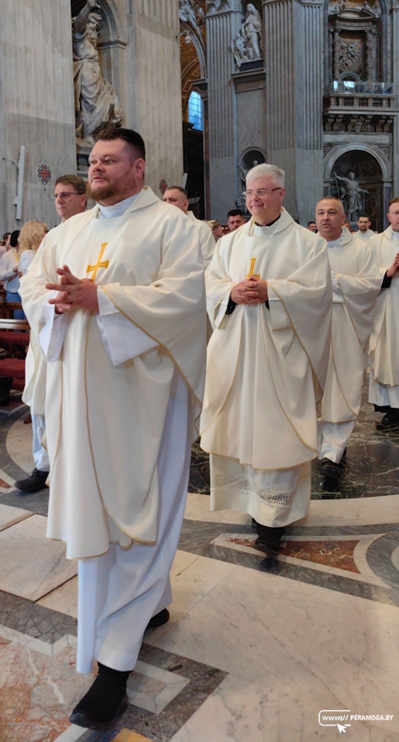– Для каждого из присутствующих 22 октября 2025 года станет историческим днем, когда впервые на центральном алтаре Ватиканской базилики была проведена служба на белорусском языке для пятисот пилигримов из Беларуси. В тот момент царила необыкновенная атмосфера, – делится Елизавета Гракович. – Богослужение украшали голоса нашего вилейского приходского хора песнями «Малюся за Цябе Беларусь» и гимном прославления к Матери Божьей Будславской, которые с радостью подпевали белорусские верующие. В конце службы представитель охраны Базилики, воодушевленно напевая мелодию гимна, попросил еще раз наш хор исполнить припев на бис.