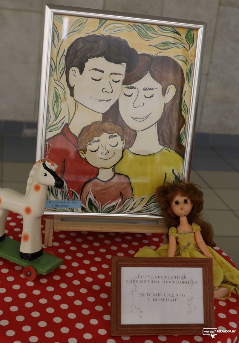 В День семьи в Вилейском городском Доме культуры прошёл праздничный концерт с участием юных и взрослых артистов. Перед его началом желающие могли сфотографироваться в тематических фотозонах и посетить выставки детских рисунков и игрушек, в которые играли родители современных детей.