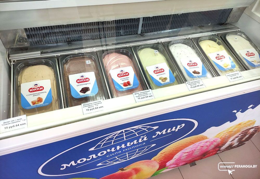 На современных стеллажах размещены конфеты, шоколад, кофе и другие товары. Появился и раздел весового мороженого, где представлены разнообразные вкусы: клубника, соленая карамель, фисташки и другие.