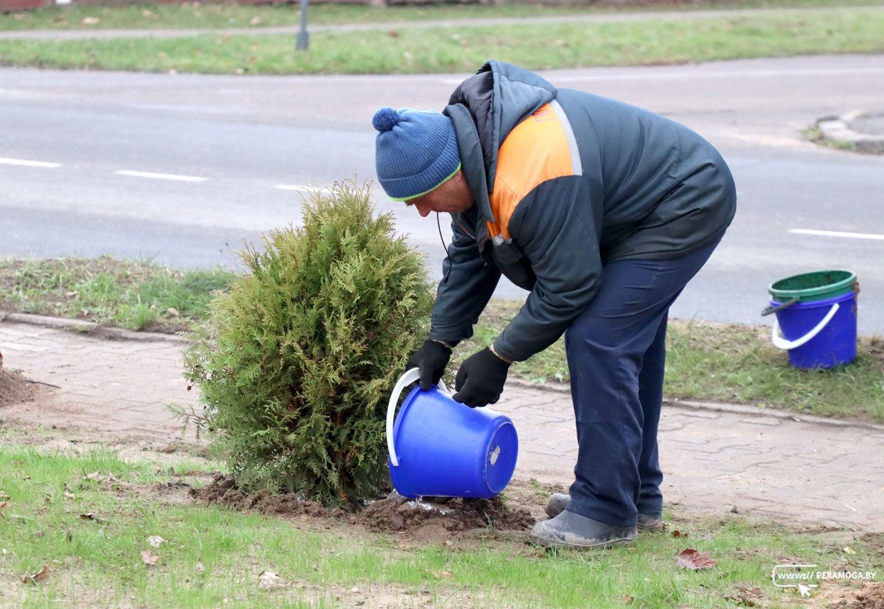 – В общей сложности было высажено 107 туй, – делится ландшафтный архитектор Вилейского ЖКХ Римма Казанович. – Из них 16 шаровидных, остальные пирамидальные.