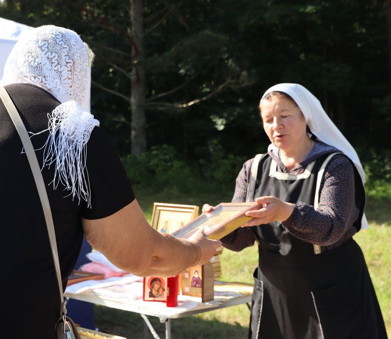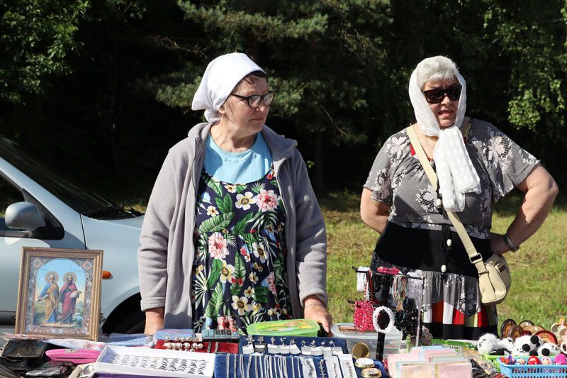 И этот год не стал исключением: пока в храме Богослужение и Крестный ход, рядом развернулась ярмарка с изделиями местных мастеров, лакомствами, медом и монастырскими товарами. Конечно, не обошлось и без тех самых всеми любимых петушков и другой разноцветной карамели.
