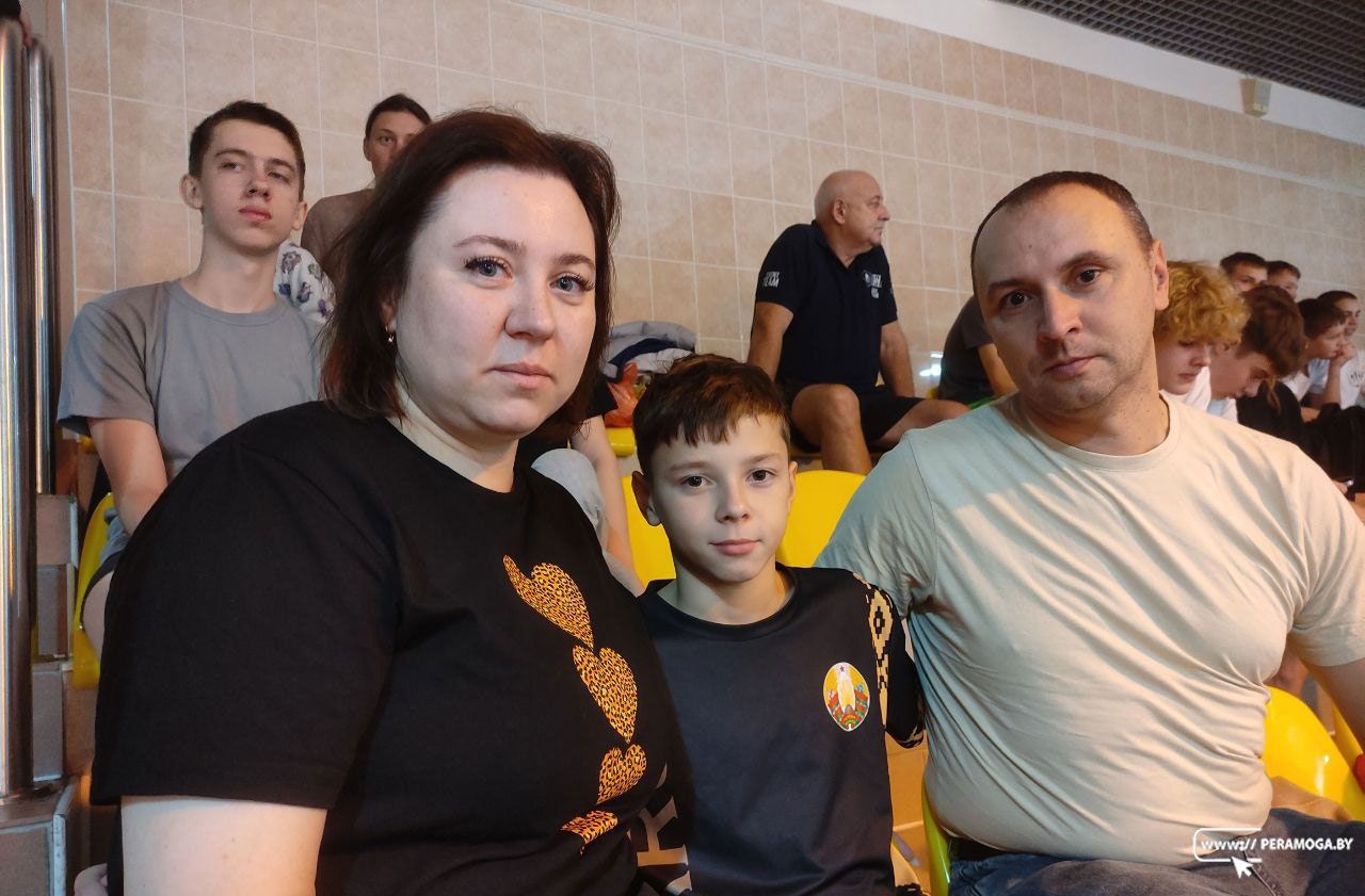 Среди болельщиков на трибуне находилась многодетная семья Дунец, которая приехала из Молодечно. «В соревнованиях участвует наш старший сын Тимофей. Это его первое выступление, поэтому есть волнение. Но мы уверены, что он достойно выступит. У него большое стремление к этому виду спорта, а также силы, выносливость и дисциплина», – поделилась мама Светлана.