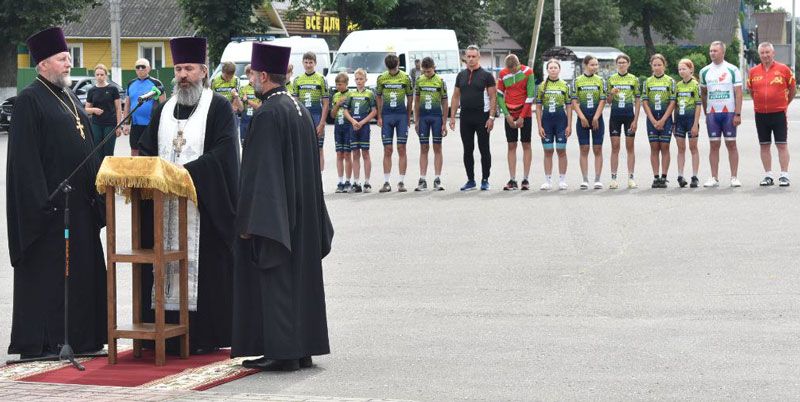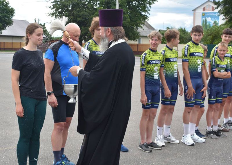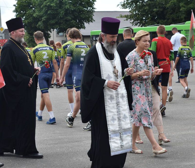 После возложения цветов протоиерей Вячеслав обратился с напутственным словом к участникам велопробега, он со священниками совершил литию по погибшим в годы Великой Отечественной войны и окропил всех святой водой.