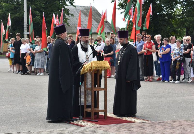 Благочинный Вилейского церковного округа, настоятель прихода храма преподобной Марии Египетской протоиерей Вячеслав Вабищевич, настоятель прихода храма Покрова Пресвятой Богородицы протоиерей Игорь Дражин, настоятель прихода храма Святителя Тихона Патриарха Всероссийского иерей Вячеслав Пешко, совместно с заместителем председателя Вилейского районного исполнительного комитета Людмилой Слепцовой, с председателем районного Совета депутатов Еленой Чеботарь, приняли участие во встрече участников велопробега, посвященного 80-летию Победы в Великой Отечественной войне и 900-летию со дня основания Спасо-Евфросиниевского ставропигиального женского монастыря у памятника погибшим в годы Великой Отечественной войны в Вилейке.