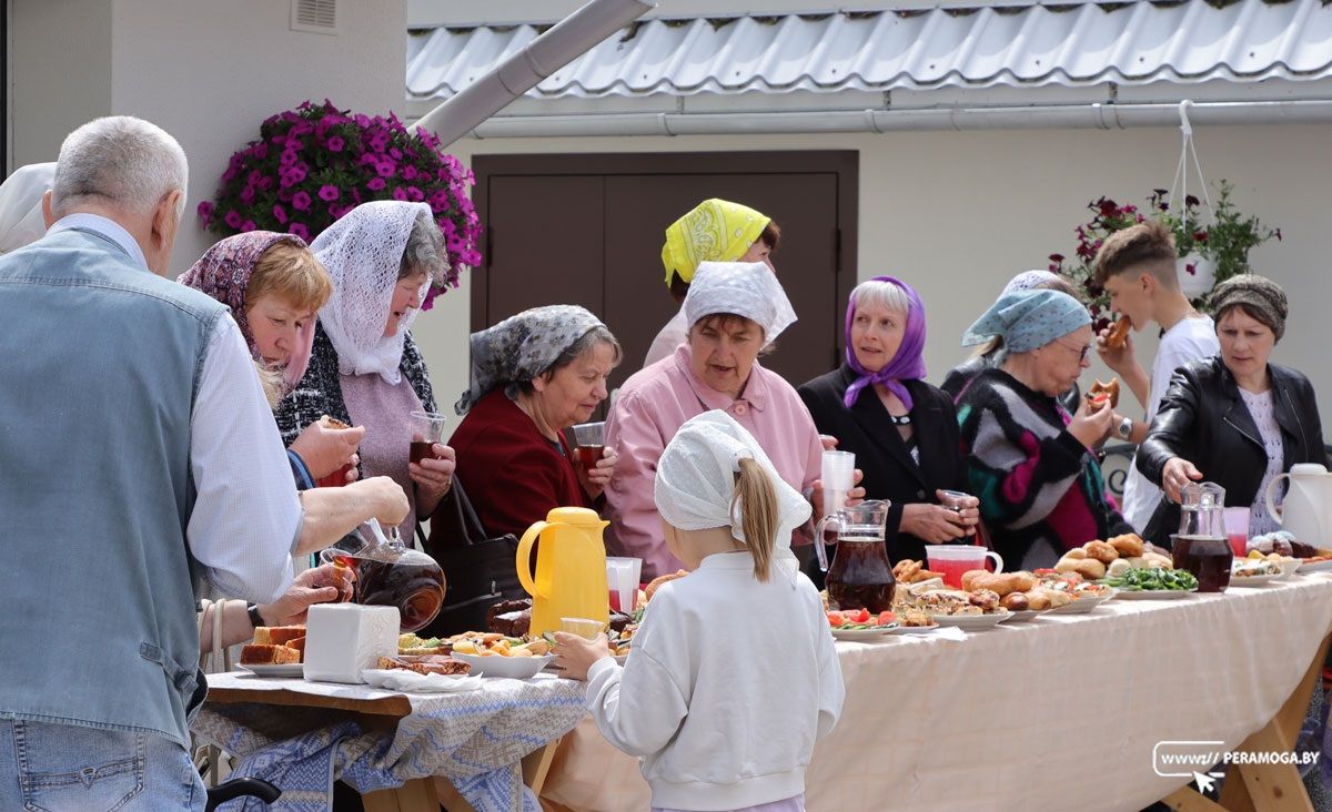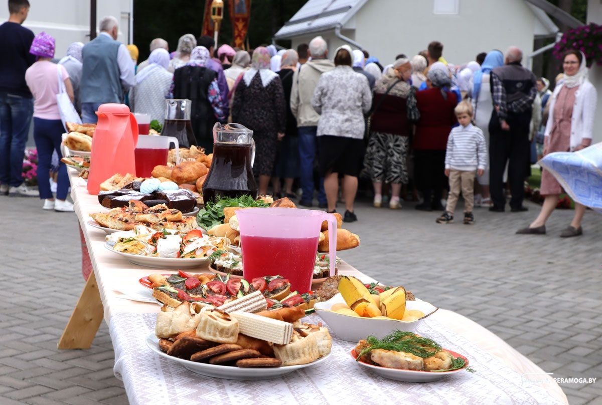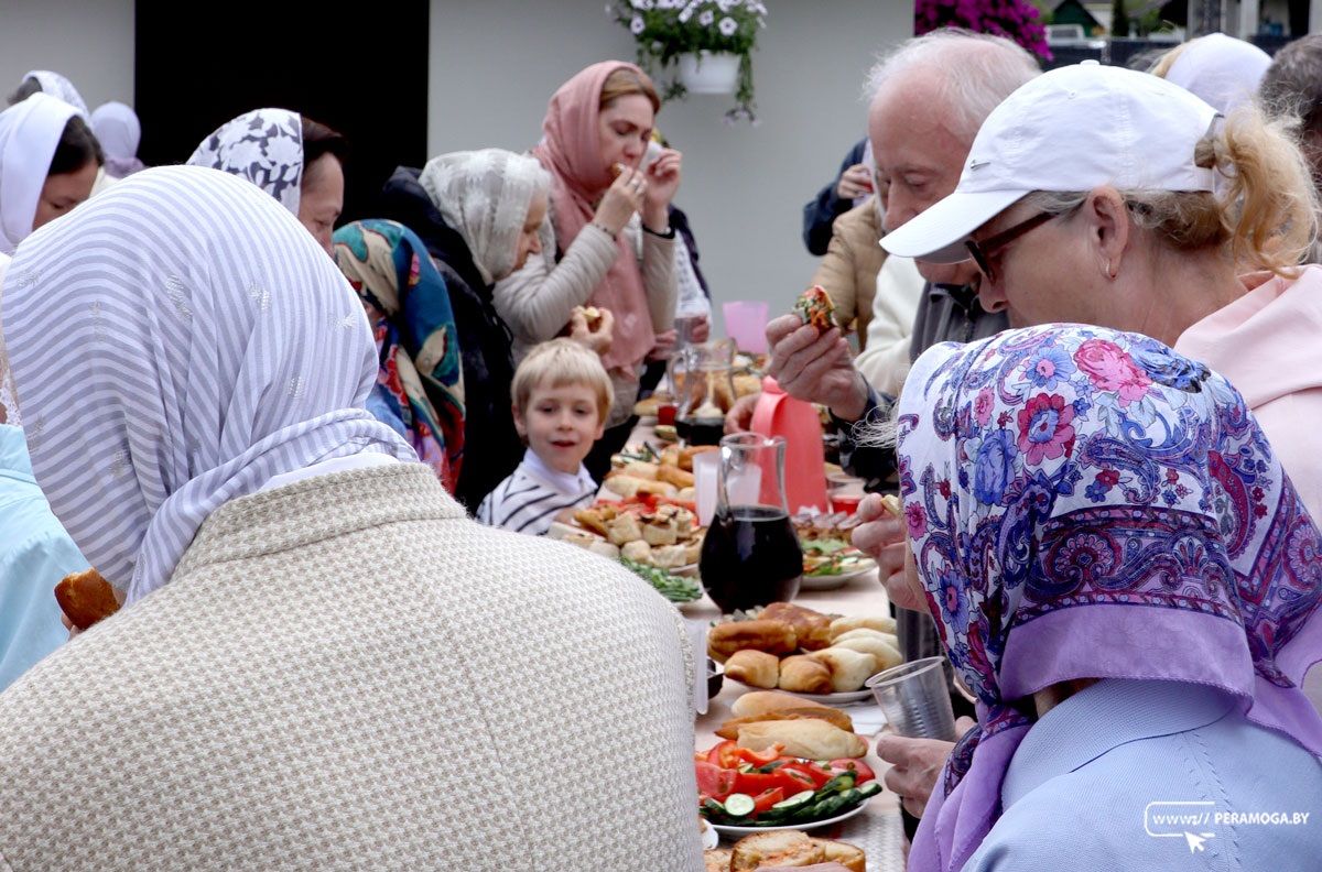 По окончании Литургии был совершен крестный ход, после на территории храма прошла трапеза для верующих.