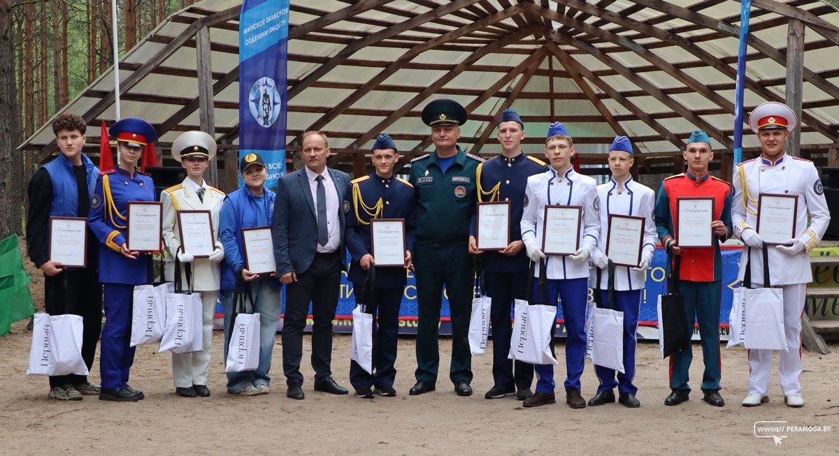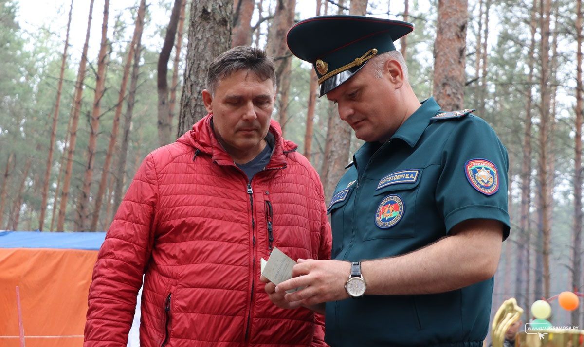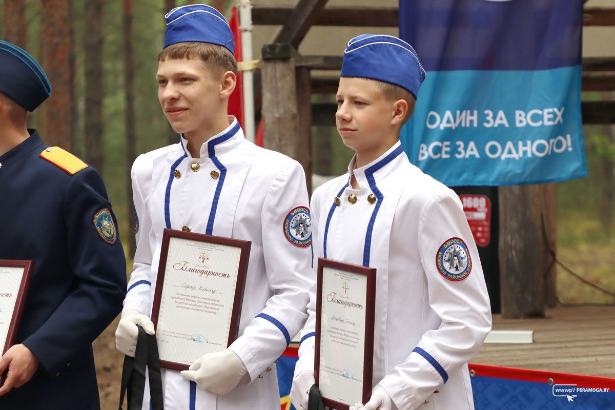 На торжественном открытии Валерий Войтехович и Александр Аленский наградили наиболее активных участников Белорусской молодежной общественной организации спасателей-пожарных. Среди отмеченных – представители команды «Пламя» Степан Белькович и Кирилл Седый.