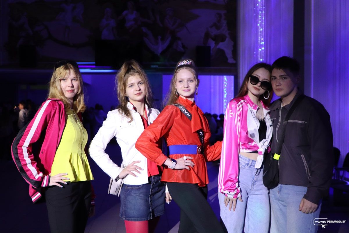 Особенно выделялись девушки, которые подошли к дресс-коду с креативом. Высокие хвосты, серьги-кольца, джинсовая и спортивная одежда, яркие лосины и аксессуары – каждый образ был продуман до мелочей. Они словно перенеслись во времени, придавая дискотеке особый шарм и настроение настоящей ретровечеринки.