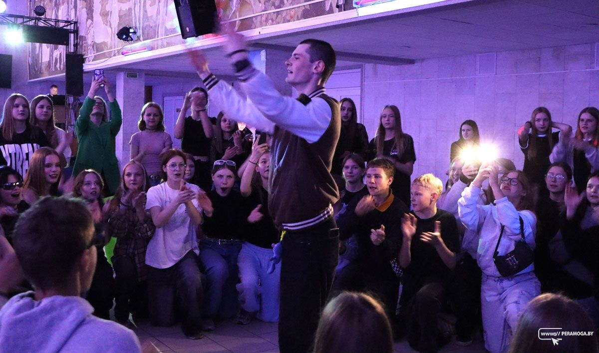 Еще одним ярким моментом дискотеки стал зажигательный танец молодого парня. 17-летний Захар всего за несколько недель стал не просто узнаваемым – он превратился во всеобщего любимчика вилейской молодежи.