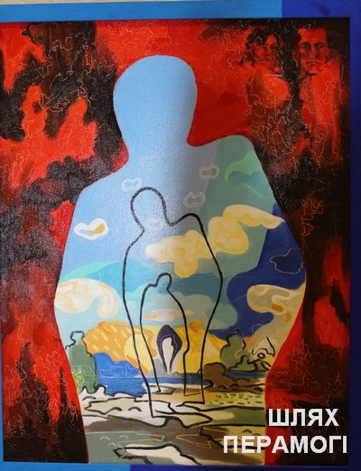 – Пасля таго, як Стржэмінскі падарваўся на гранаце, усё ў яго жыцці перавярнулася разам з зямлёй, людзьмі – таму такі крывава-чырвоны колер фону карціны, праз які адкрываюцца вобразы-абрысы мастака з насычанасцю нябесных, светлых колераў, быццам пазламі яго новага жыцця. Ён выйшаў з таго чорна-чырвонага колеру і ідзе далей па жыцці. Бо калі чалавеку дапамагаюць не толькі фізічна вылечыцца, але і духоўна – у яго з’яўляюцца крылы. Стржэмінскі змог вырвацца і пайсці далей, бо побач была Кацярына Кобра. Колеры работ Стржэмінскага маюць сваю ўнутраную энергетыку. Ён пакінуў пасля сябе такое мастацтва, якое дае магчымасць бачыць унутраны свет мастака, а не яго калецтва. Стржэмінскі сапраўдны наш нацыянальны герой.