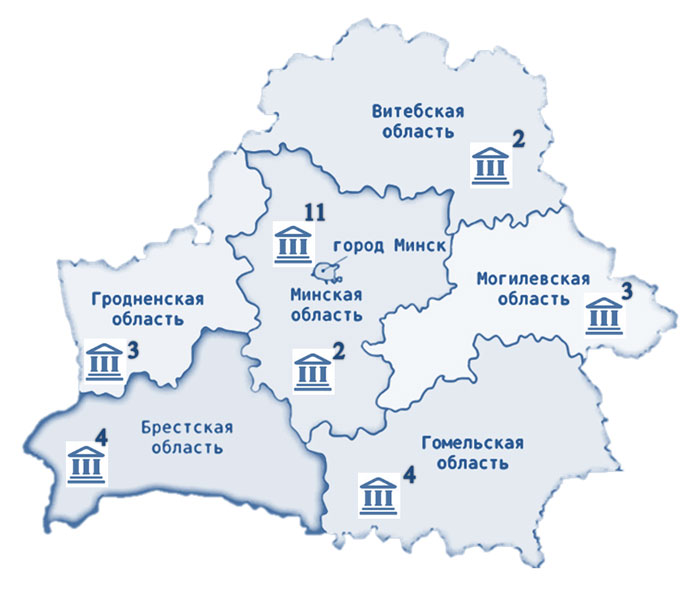 Число театров по областям и г.Минску в 2019 году (на конец года)