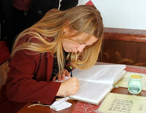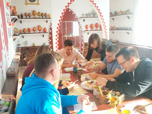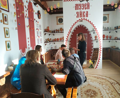 Для гостей была представлена экскурсия по «Музею яйца», а также обучающий мастер-класс по росписи яиц воском. С интересом, азартом и удивительной ловкостью, ребята осваивали разнообразные символы традиционной писанки, узнали о значении нанесенных символов, выбранном цвете для окрашивания, а также о различных техниках и способах нанесения рисунка. Далее присутствующие посетили выставку творческих работ мастеров Дома ремёсел. Слова благодарности сотрудникам и творческих успехов всему коллективу посетили оставили в книге пожеланий.