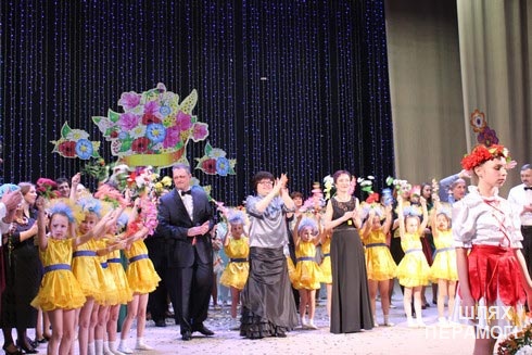 Увесь вечар на сцэне Палаца культуры сваё мастацтва прадстаўлялі выдатныя калектывы педагогаў і навучэнцаў школы мастацтваў – інструментальныя, харавыя, эстрадныя, харэаграфічныя. Свае творчыя віншаванні падаравала юбілярам і іх калега, выпускніца школы, дырэктар Вілейскага Цэнтра эстэтычнага выхавання, кіраўнік народнага калектыву аўтарскай песні «Элегія» Таццяна Захарыч, якая ў суправаджэнні двух выдатных калектываў школы – узорнага ансамбля гітарыстаў «Адэліта», кіраўнік Уладзімір Лапцік, і хору старэйшых класаў «Актавіка», кіраўнік Аксана Ткачэнка – выканала твор «Міншчына» нашых таленавітых землякоў – паэта Уладзіміра Цануніна і музыканта і кампазітара Уладзіміра Лапціка.