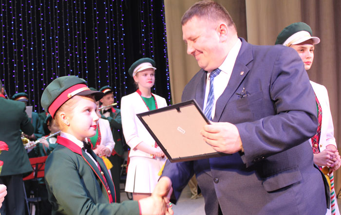 Упоминались на концерте и другие яркие для школы события. Так, в конце прошлого года образцовый духовой оркестр ДШИ отметил знаменательную дату – 30 лет со дня образования. А ансамбль мажореток «Фиеста» под руководством Ирины Сидоревич совсем недавно получил почетное звание «Образцовый любительский коллектив Республики Беларусь».