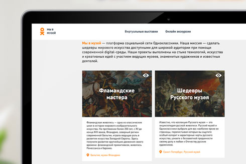 На портале об искусстве «Мы в музей», созданном соцсетью в прошлом году, теперь доступны виртуальные прогулки по постоянным и временным экспозициям из Государственного Эрмитажа, ГМИИ им Пушкина, Русского музея, Государственной Третьяковской галереи, Московского музея современного искусства, Музея современного искусства «Гараж», ВДНХ и других российских музеев.