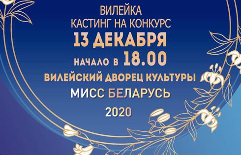 РЕГИОНАЛЬНЫЙ КАСТИНГ «МИСС БЕЛАРУСЬ-2020» В ВИЛЕЙКЕ ПРОЙДЕТ 13 ДЕКАБРЯ