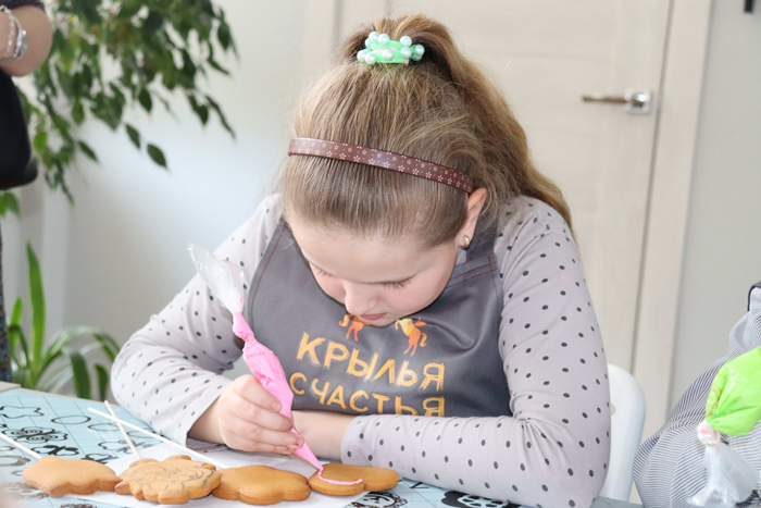 Прошло не так уж много времени – и «Крылья счастья» вернулись в Вилейку, чтобы подарить воспитанникам названных учреждений «пряничное» настроение и познакомить с увлекательным видом деятельности – росписью вкусных и ароматных пряников. Для этого из Минска приехал «самый бодрый кондитерский цех» – именно так презентуют себя изготовители тортов и сувенирных пряников, которые для полезного и интересного времяпрепровождения привезли с собой всё необходимое.