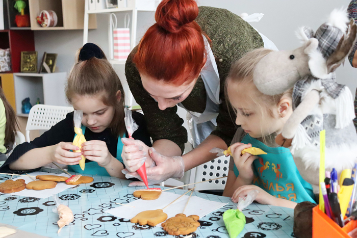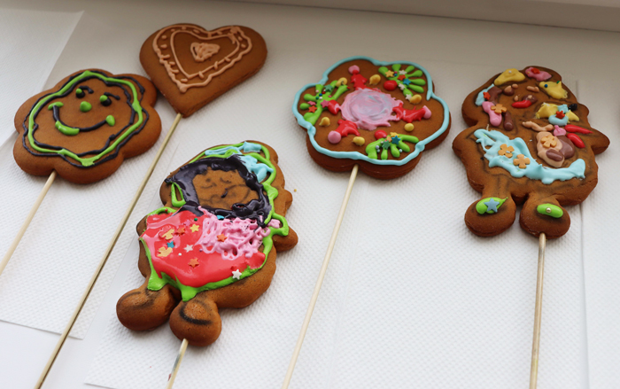 Пряники на длинных шпажках в форме сердечек и цветочков, машинок и принцесс для юных художников-кондитеров стали холстом, а разноцветная сахарная глазурь и посыпка заменили краски и фломастеры. Всё – исключительно съедобное и натуральное, по проверенным рецептам.