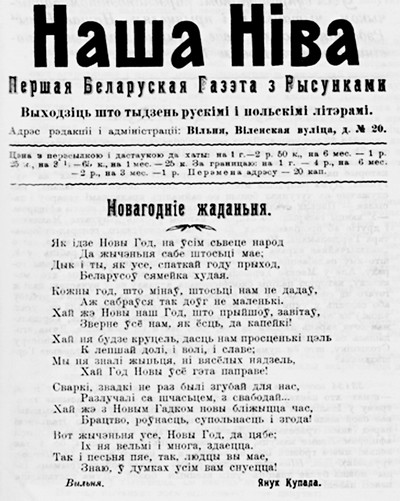 Штотыднёвая грамадска-палітычная, навукова-асветніцкая і літаратурна-мастацкая газета «Наша Ніва» пачала выдавацца ў Вільні ў лістападзе 1906 года. Да 1912 года газета друкавалася кірыліцай і ліцінкай, пазней – толькі кірыліцай, перастала выходзіць у час Першай сусветнай вайны ў сувязі з набліжэннем фронту да Вільні. Першым рэдактарам і выдаўцоў газеты «Наша Ніва» быў ураджэнец Вілейкі Аляксандр Мікітавіч Уласаў. Паводле падлікаў супрацоўніка рэдакцыі, пісьменніка Ядвігіна Ш., за першыя тры гады «Наша Ніва» надрукавала 906 уласных карэспандэнцый з 499 вёсак, мястэчак і гарадоў, 246 вершаў 61 паэта і 91 апавяданне 36 празаікаў. Толькі ў 1910 годзе ў газеце з’явілася 666 карэспандэнцый з 122 населеных пунктаў Віленскай, з 81 – Мінскай, з 49 – Гродзенскай, з 27 – Магілёўскай, з 9 – Віцебскай, з 9 – Ковенскай, 2 – са Смаленскай губерняў і з 14 іншых месцаў («чужых старон»), а ўсяго разам – з 313 пунктаў. Сярод паветаў найбольшая колькасць карэспандэнцкіх пунктаў была ў Віленскім (48), Слуцкім (39), Вілейскім (30), Гродзенскім (27), Ашмянскім (20), Мінскім (18), Дзісненскім і Барысаўскім (да 9), Лідскім, Сакольскім (па 8), Свянцянскім (7), Аршанскім, Горацкім і Клімавіцкім (па 6) паветах.